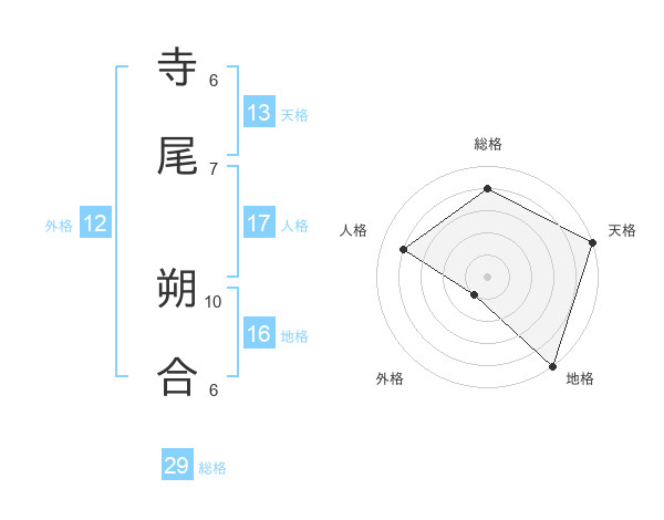 寺尾 朔合さんを姓名の画数から五運を鑑定