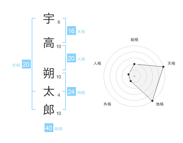 宇高 朔太郎さんの天格は16画の5点!