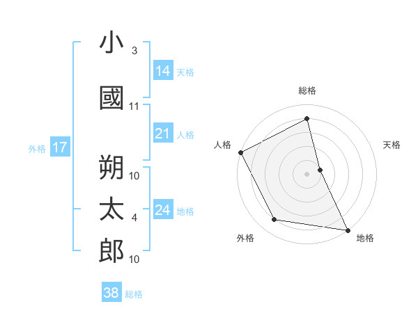 小國 朔太郎さんを姓名の画数から五運を鑑定