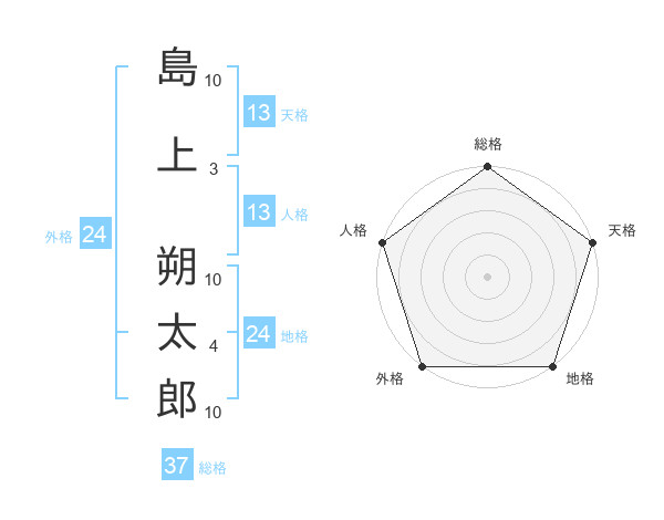 島上 朔太郎さんの総格は37画の5点!