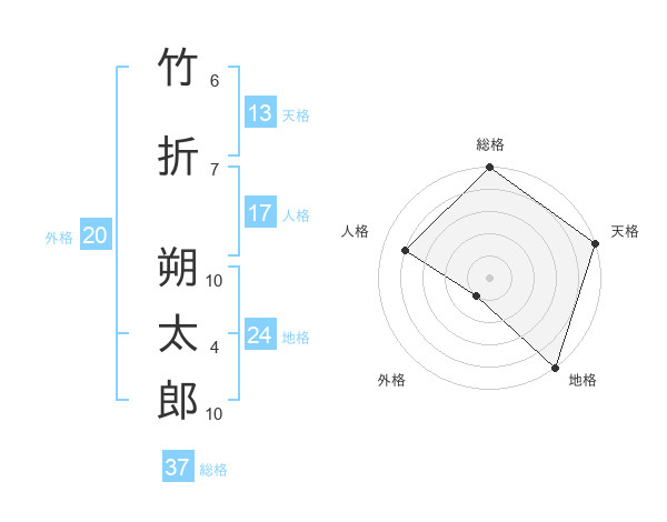竹折 朔太郎さんを姓名の画数から五運を鑑定