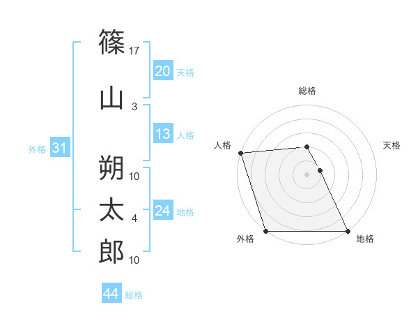 篠山 朔太郎さんを姓名の画数から五運を鑑定