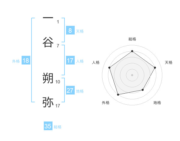 一谷 朔弥さんの総格は35画の4点!