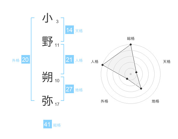 小野 朔弥さんを姓名の画数から五運を鑑定