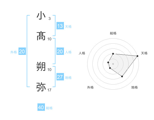 小髙 朔弥さんの天格は13画の5点!