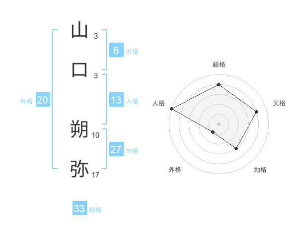 山口 朔弥さんの総格は33画の4点!