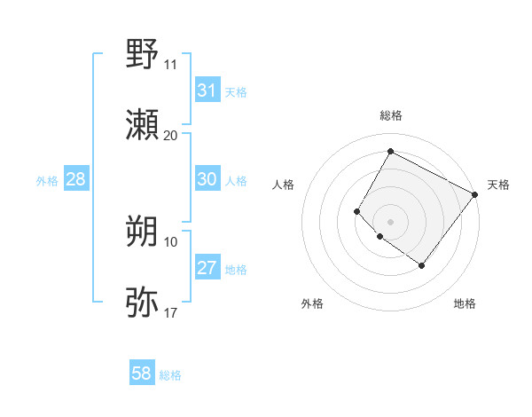 野瀬 朔弥さんを姓名の画数から五運を鑑定