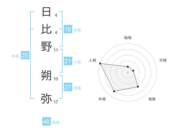 日比野 朔弥さんを姓名の画数から五運を鑑定