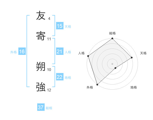 友寄 朔強さんを姓名の画数から五運を鑑定