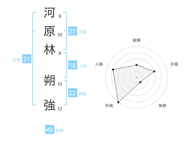 河原林 朔強さんを姓名の画数から五運を鑑定