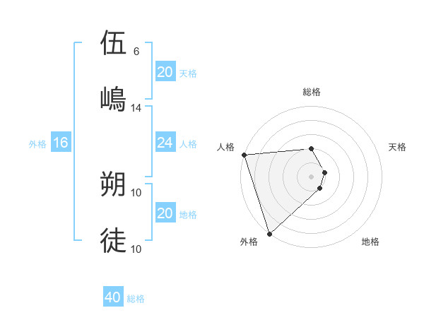 伍嶋 朔徒さんの外格は16画の5点!