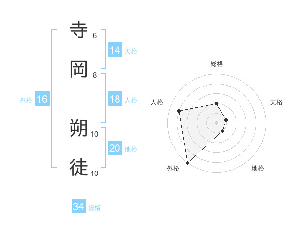 寺岡 朔徒さんの外格は16画の5点!