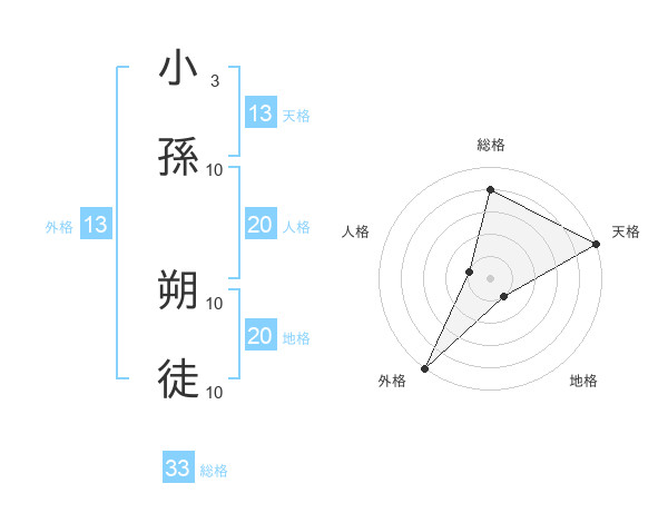 小孫 朔徒さんの外格は13画の5点!