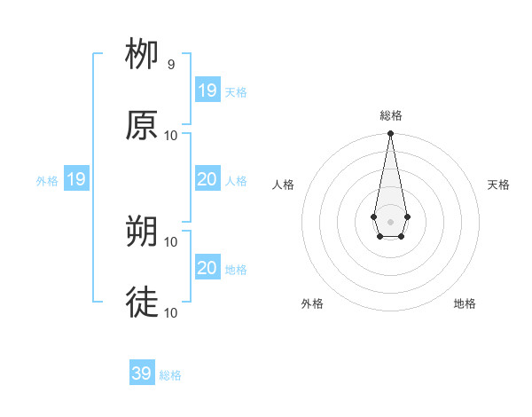 栁原 朔徒さんの総格は39画の5点!