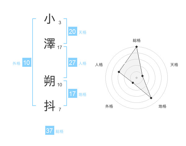 小澤 朔抖さんを姓名の画数から五運を鑑定
