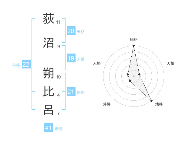 荻沼 朔比呂さんを姓名の画数から五運を鑑定