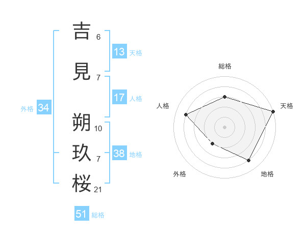吉見 朔玖桜さんを姓名の画数から五運を鑑定