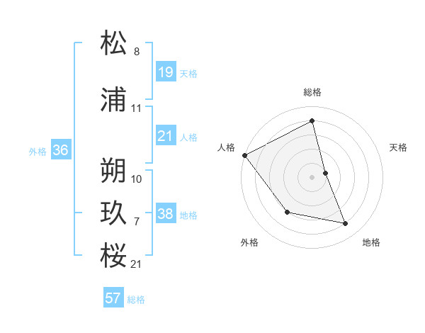 松浦 朔玖桜さんの総格は57画の4点!