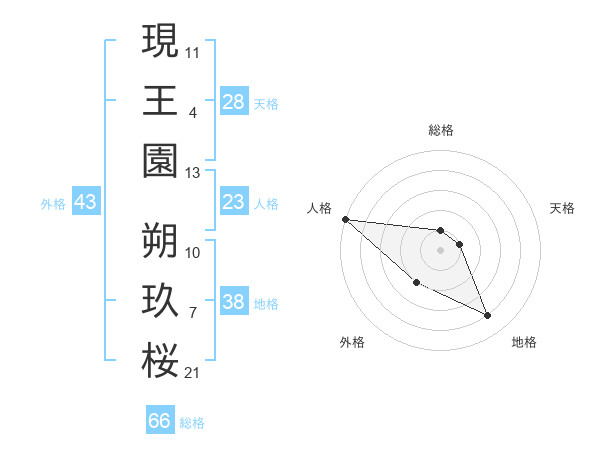 現王園 朔玖桜さんを姓名の画数から五運を鑑定