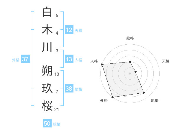 白木川 朔玖桜さんの外格は37画の5点!