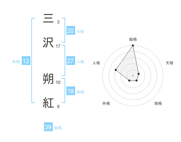 三沢 朔紅さんを姓名の画数から五運を鑑定
