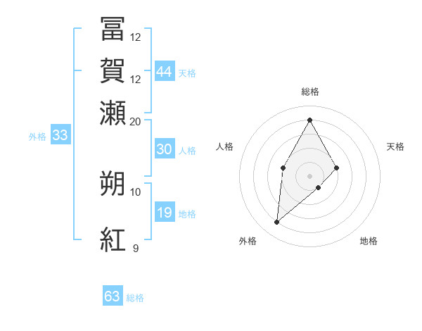 冨賀瀬 朔紅さんの総格は63画の4点!