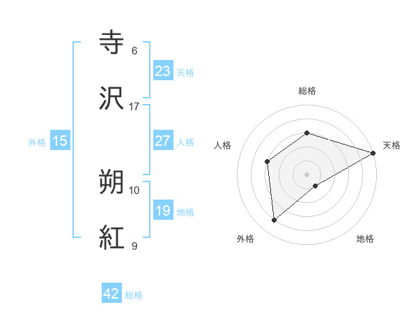 寺沢 朔紅さんの天格は23画の5点!