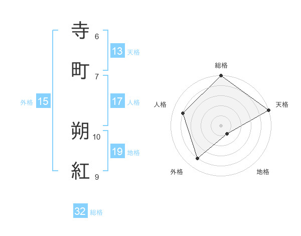 寺町 朔紅さんを姓名の画数から五運を鑑定