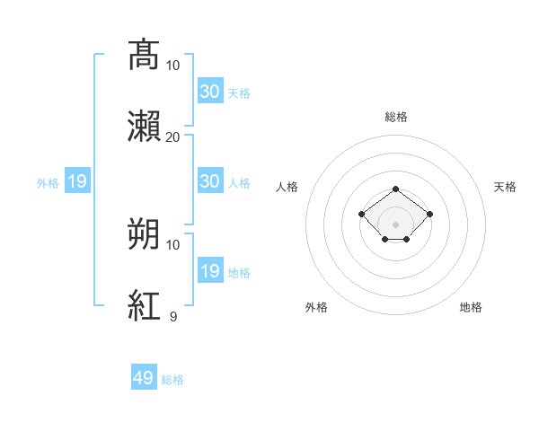 髙瀨 朔紅さんの総格は49画の2点!