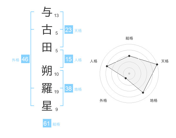 与古田 朔羅星さんを姓名の画数から五運を鑑定