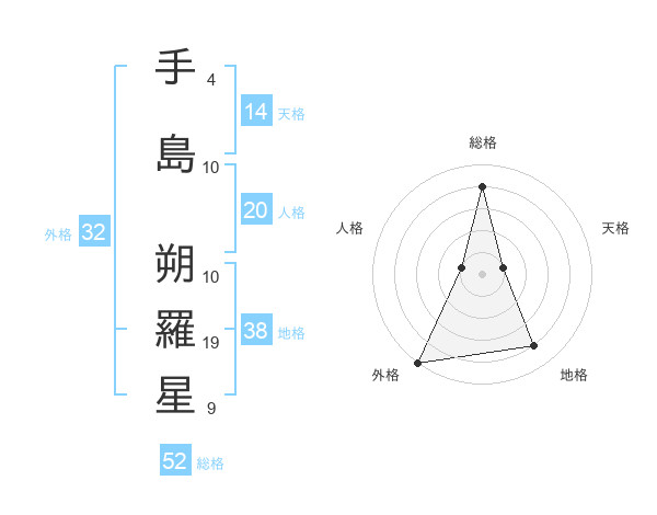手島 朔羅星さんの総格は52画の4点!