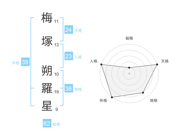 梅塚 朔羅星さんを姓名の画数から五運を鑑定