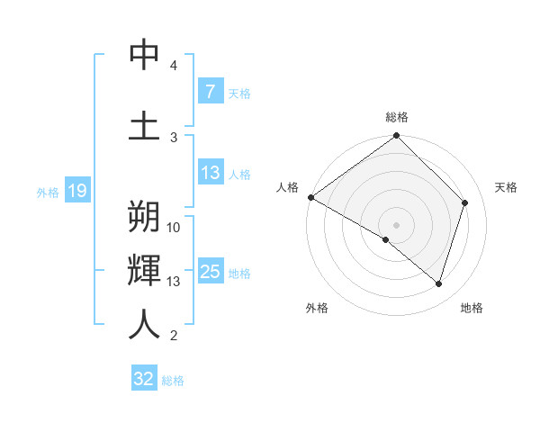 中土 朔輝人さんの総格は32画の5点!