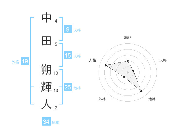 中田 朔輝人さんを姓名の画数から五運を鑑定