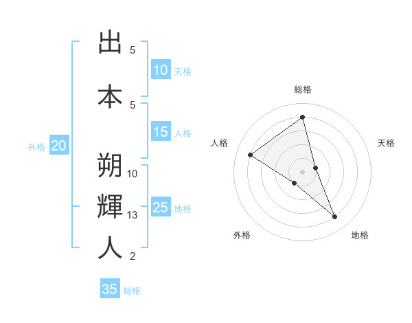 出本 朔輝人さんの総格は35画の4点!