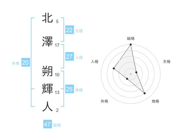 北澤 朔輝人さんの総格は47画の5点!