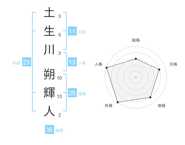 土生川 朔輝人さんの外格は23画の5点!