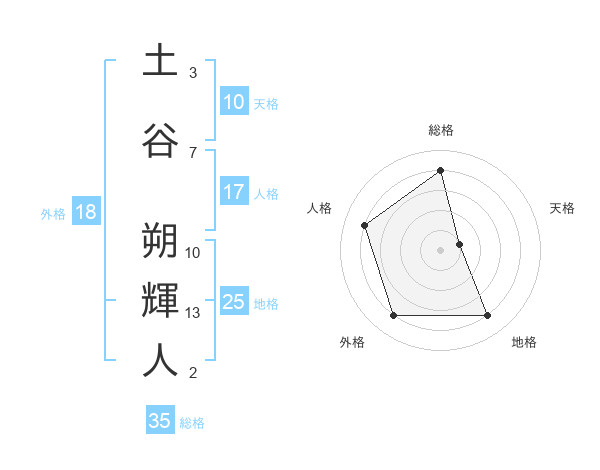 土谷 朔輝人さんを姓名の画数から五運を鑑定