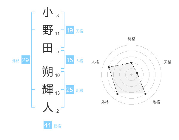 小野田 朔輝人さんを姓名の画数から五運を鑑定