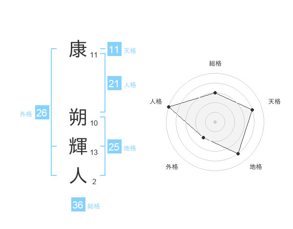 康 朔輝人さんの天格は11画の4点!