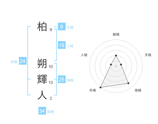 柏 朔輝人さんの総格は34画の2点!
