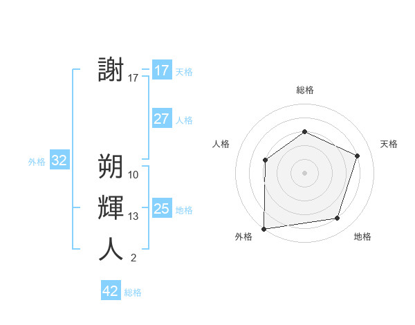 謝 朔輝人さんを姓名の画数から五運を鑑定
