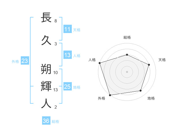 長久 朔輝人さんを姓名の画数から五運を鑑定