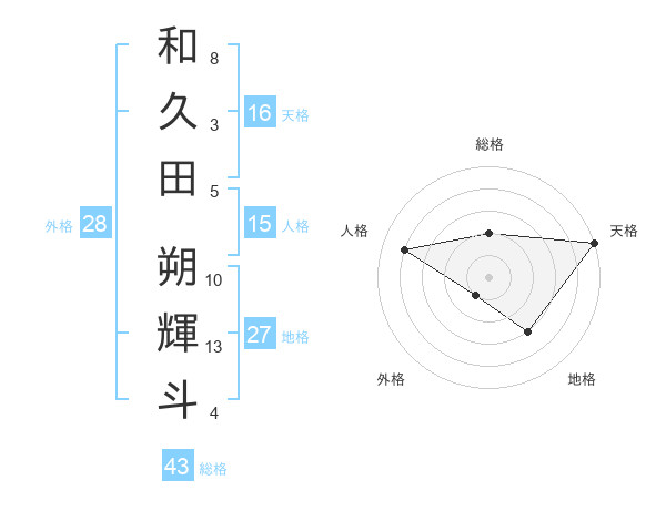 和久田 朔輝斗さんを姓名の画数から五運を鑑定