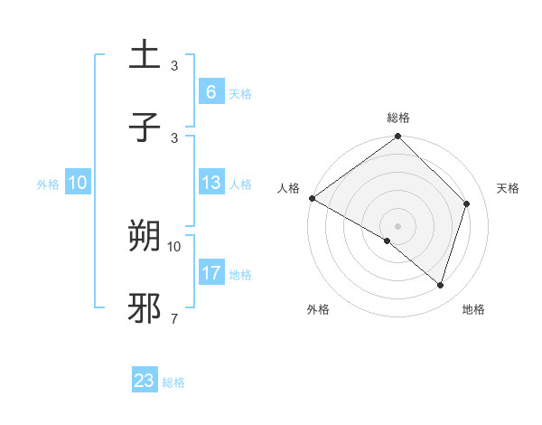 土子 朔邪さんの総格は23画の5点!