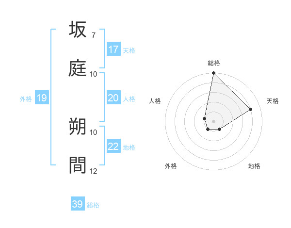 坂庭 朔間さんの総格は39画の5点!