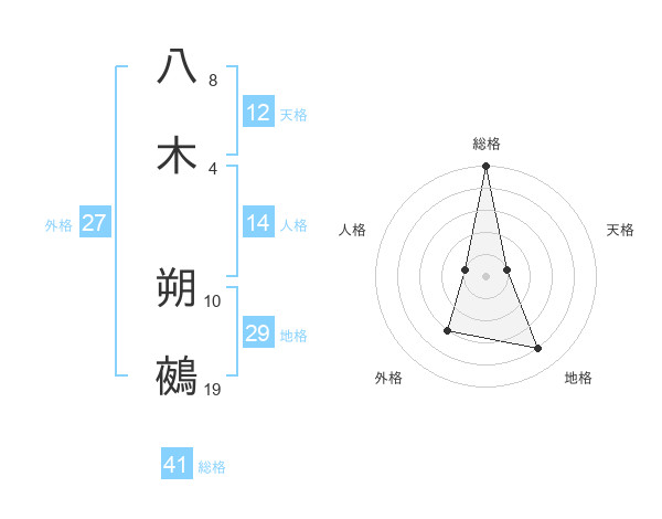 八木 朔鵺さんの総格は41画の5点!