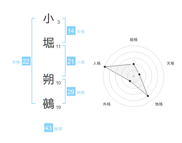 小堀 朔鵺さんの外格は22画の1点!