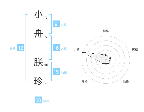 小舟 朕珍さんを姓名の画数から五運を鑑定