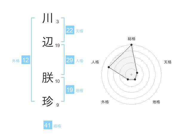 川辺 朕珍さんの総格は41画の5点!